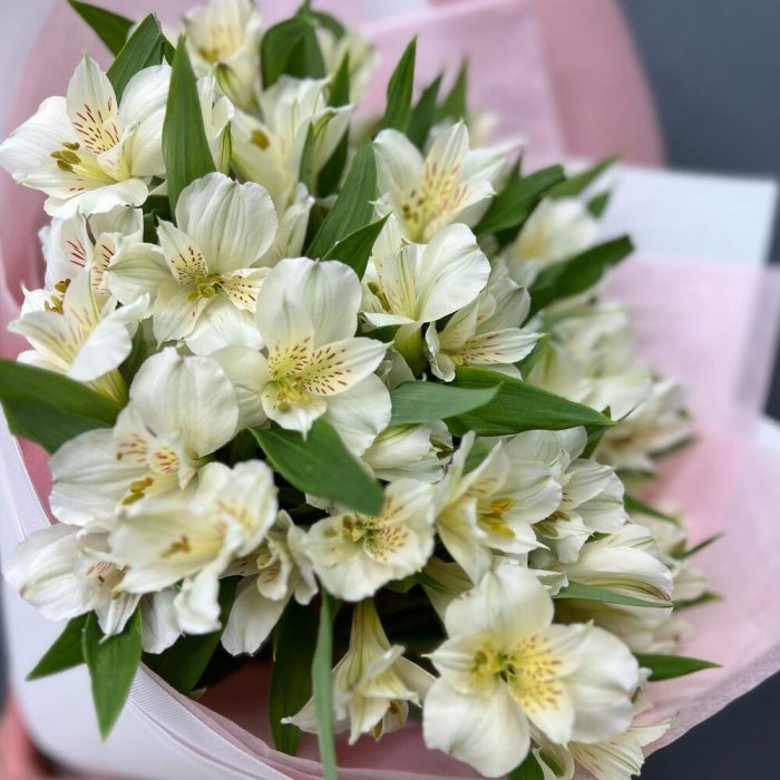 Альстромерия – 15 шт.Лента – 1 шт.Тишью – 1 шт.структурированный фаомиран – 1 шт.