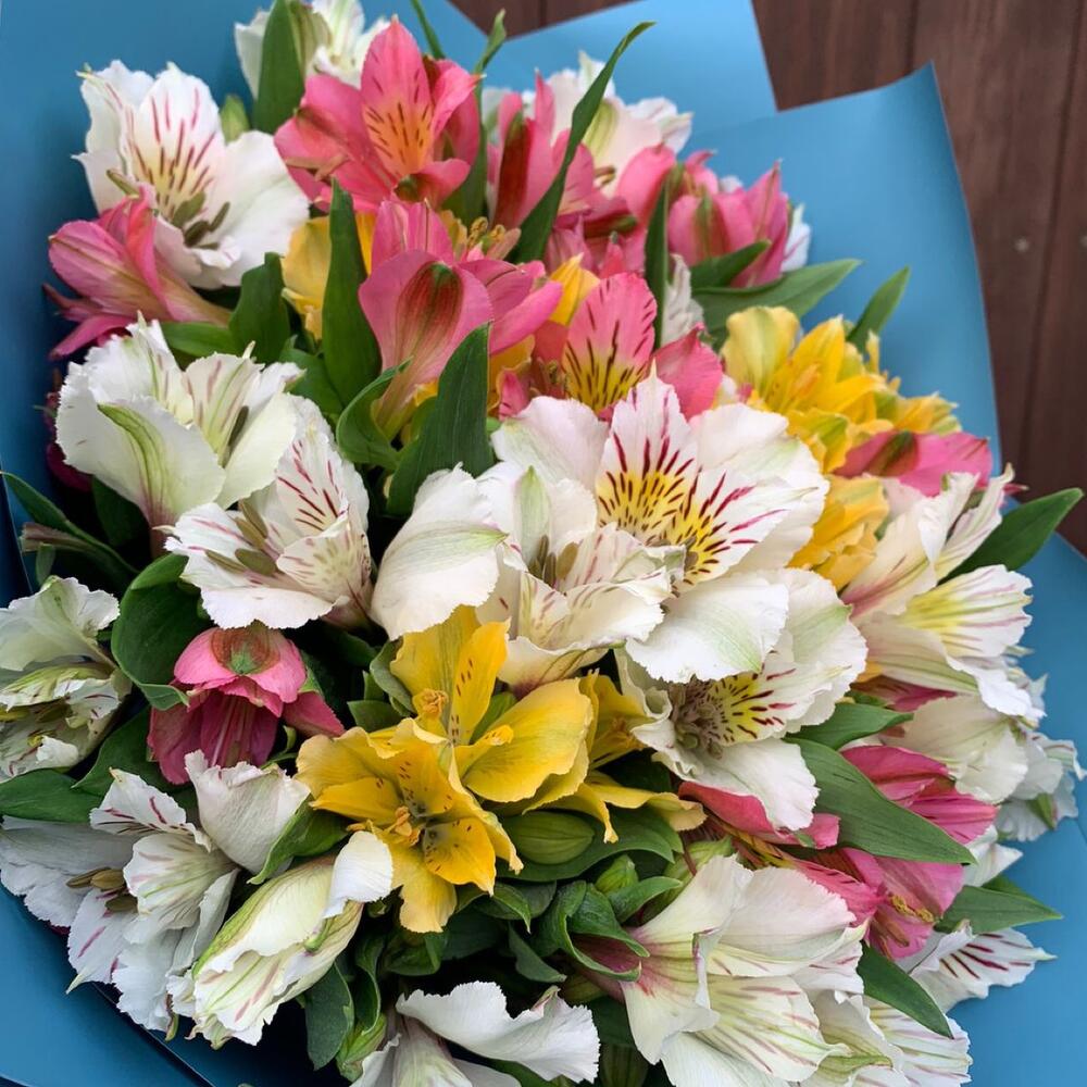 Альстромерия – 21 шт.Упаковка – 1 шт.Лента атласная – 1 шт.