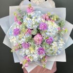 Авторский букет голубая Гортензия и ароматная Маттиола