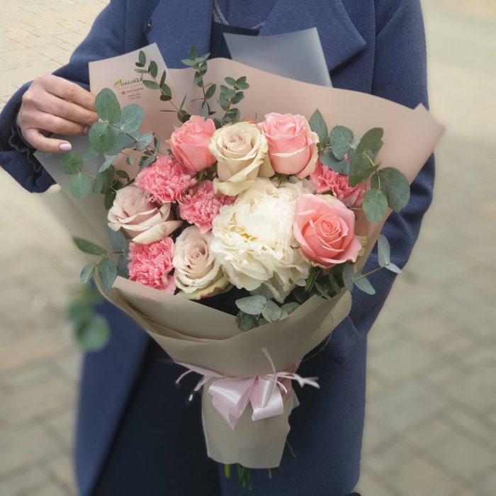 Пионовидные розы и пионы «Нежность»