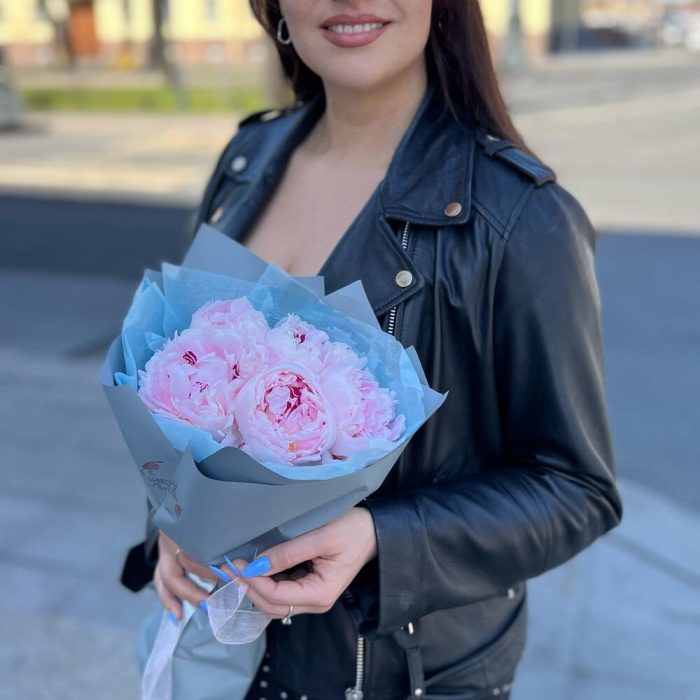 5 пионов нежно-розовых Сара Бернар