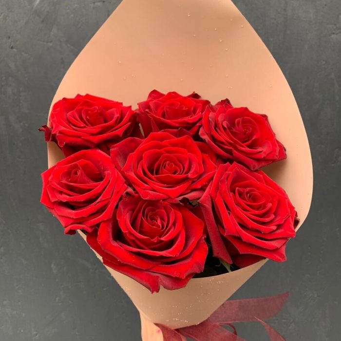 Роза – 7 шт.Упаковка – 1 шт.Лента – 1 шт.