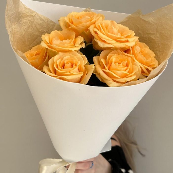 Букет из 7 персиковых роз в упаковке