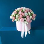 “Атлас☁️” – цветочная композиция с зефиром в деревянном ящике